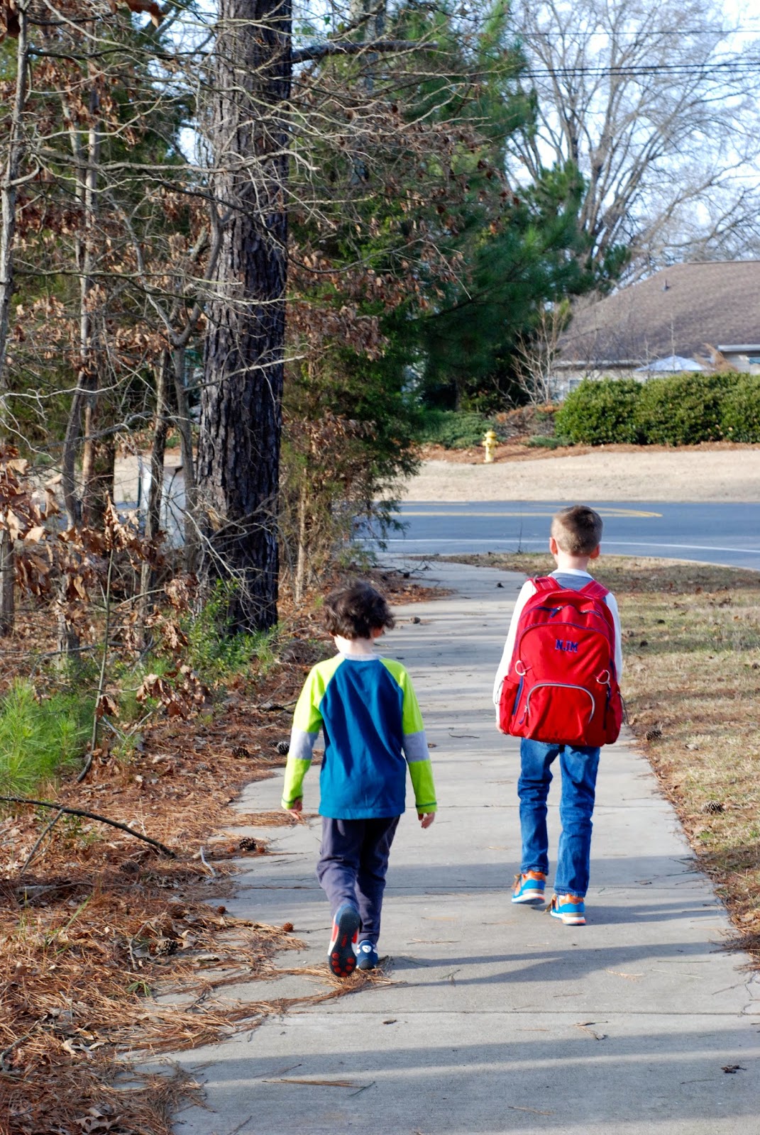 On warm weather days we walk home from school. It's N's favorite way to get home. T claims it's too far, but I think secretly he likes walking there and back.