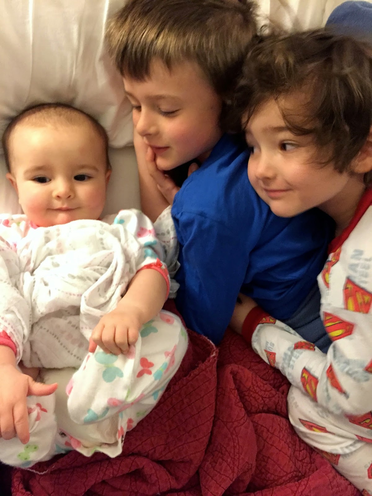 The three of them are too cute!! KC is one flexible baby! Maybe she'll be a yoga instructor one day :)