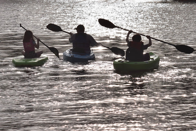 The lake trip did not disappoint. The kids were in love with kayaking, paddleboarding, and canoeing. We planned a hike and a visit to Indian mounds, but eventually scrapped the Indian mound visit to allow them more time on the water. Even after all the cars were packed up on the day we left T had to go out "one last time."